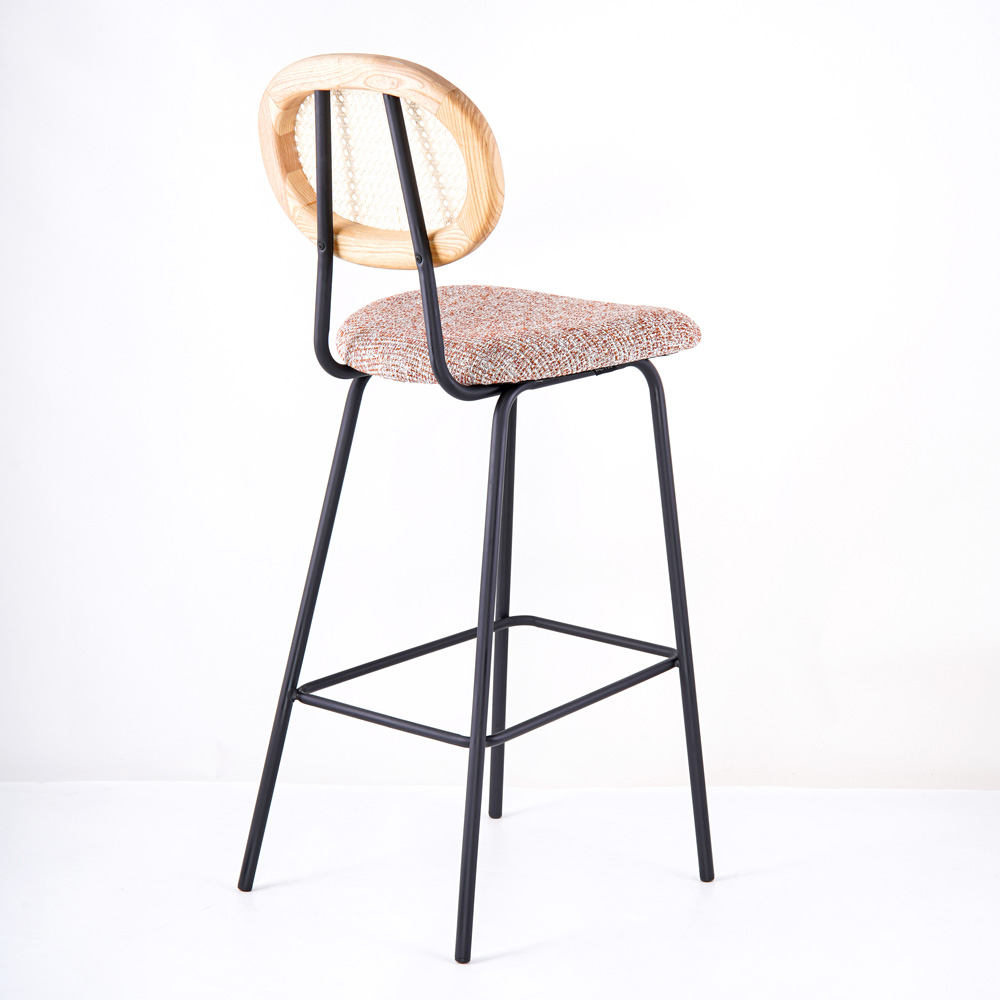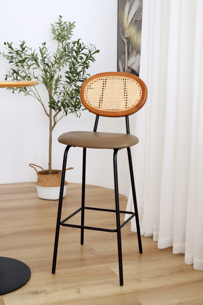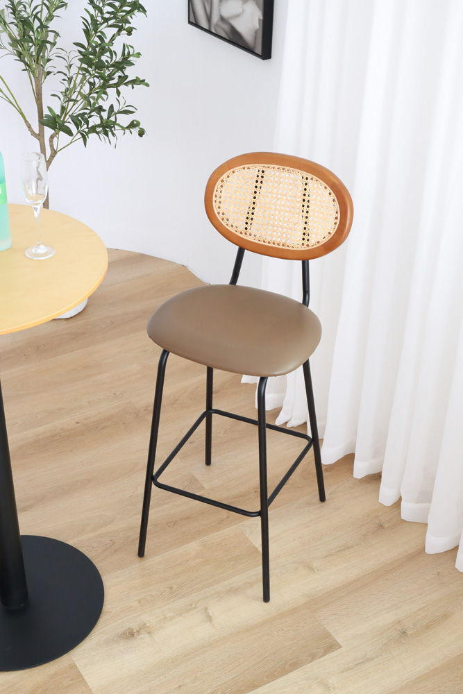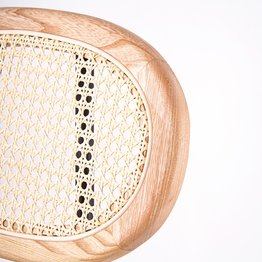 Material: American Ash Wood*Upholstered*Rattan&黑色铁架 Size:W41* D48* H109* SH75
